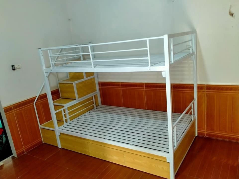Giường tầng sắt gia đình có thang hộp ngăn kéo 1m2 GT 81