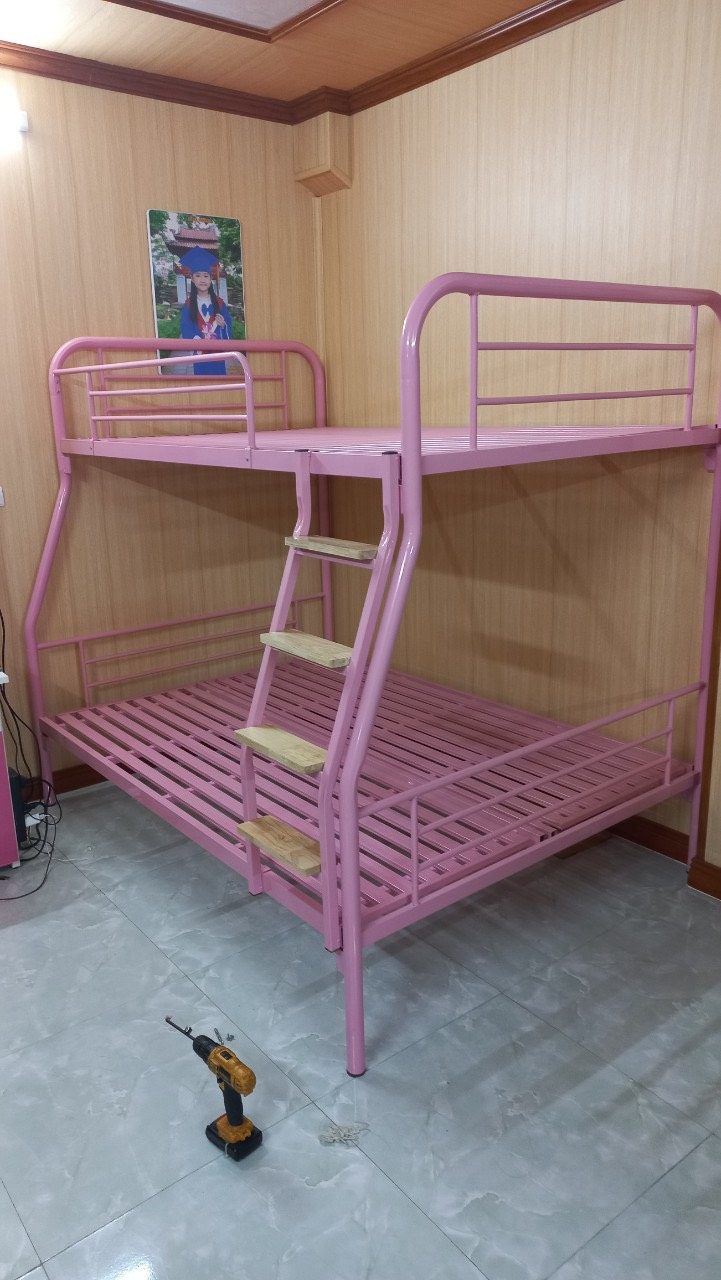 là dòng sản phẩm giường sắt dát giường làm bằng khung sắt thay thế dát giường bằng gỗ truyền thống. Với những ưu điểm vượt trội về khối lượng, sự tiện dụng, giường sắt luôn được sử dụng rộng rãi tại các hộ gia đình, Homestay mang lại không gian hiện đại rộng rãi cho căn phòng của khách hàng